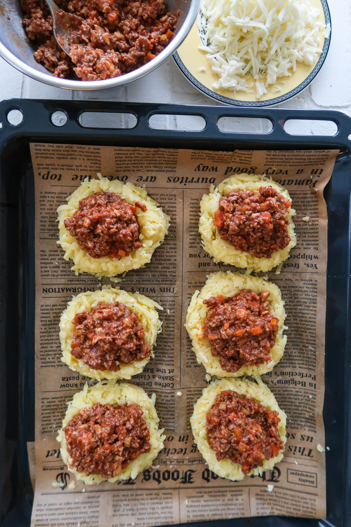 Картофельные гнезда с мясным соусом