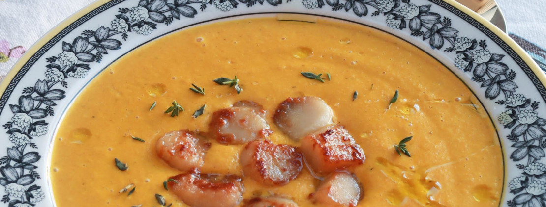 Божественный крем суп словно из мишленовского ресторана. Все ваши вкусовые рецепторы захлопают в ладоши, как только первая ложка окажется во рту. Готовится не сложно и из доступных продуктов. На каждый день можно обойтись и без морского гребешка, но если хотите побаловать себя или кого-то там еще) это идеальное сочетание. Этот суп заслуживает быть блюдом, под которое пьют вино или проводят время при свечах. Но детям он тоже пришёлся по душе.